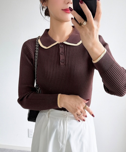 クラシカルな配色デザインが映える丸襟が可愛らしいニットポロPOINT・程よくフィットするシルエットと、長袖の落ち着いたバランスで大人っぽく着こなせるニットポロ・襟付きデザインがきちんと感をプラスしつつも、デイリーにも活躍間違いなし・程よい厚みと柔らかな肌ざわりで、季節の変わり目からロングシーズン着回せるアイテム・インしやすい厚みで、スカートにもパンツにも好相性◎【Information】◆ZOZOTOWN店のクーポンやタイムセールなどのお得情報、ZOZO限定商品の新着情報は、公式Instagram(@nostalgia_zozotown)にて配信中!◆《お気に入り登録》がオススメ・「商品のお気に入り登録」で再入荷通知や、ラストの通知、セール通知も受け取ることが出来ます。・「ブランドのお気に入り登録」で新商品や再入荷など、お得な情報を受け取ることが出来ます。【商品について】◎着用画像は撮影条件により色具合が異なって見える場合がございますので、カラー別商品画像を参考にしてください。 またご利用端末環境により、商品画像と実物では多少色が異なって見える場合がございます。◎記載のサイズは実寸サイズとなります。但し、海外生産品の為、各採寸箇所実寸より 【約-2cm〜+2cm】は誤差の許容範囲とさせていただきます。◎当店で掲載されている商品は、撮影前にすべてプレスをかけております。商品は、たたんで個別ビニール袋に入れておりますので、お届け時にはたたみシワ、細かいシワが残る場合がございます。綿・麻・レーヨンなどは強めにシワが残る場合もありますが、不具合ではございませんので予めご承知おきの上、お買い求めください。◎ “生地を織る際の糸の継ぎ目”や多少の“ほつれ”“綿・麻・ニット生地特有のネップ”が見られることがございますが、生産工程上避けられないものであり、品質上の問題ではございません。 また生地の織りに多少の他繊維が混紡している場合もございます。【着用時のご注意点・お洗濯について】◎着用時、水分(汗・湿気)を含みますと色落ちする可能性がございます。また、摩擦等で色落ちの可能性もございますので、濃色の商品の着用時には十分ご注意ください。◎お洗濯時に色落ちの可能性のある濃色は他の繊維への移染を防ぐため、洗濯表示をご参照いただき単独でのお洗濯をお願いします。また洗濯後はすぐに形を整えて干して下さい。漂白剤・乾燥機のご使用はお避けください。◎商品によっては繊維独特の匂いがある場合がございます。匂いが多少強く感じられるものもございます。数日のご使用や陰干しなどで気になる匂いはほとんど感じられなくなります。【再販について】◎再販時は出来るだけ同じものを生産するようにメーカーに依頼しておりますが、生産時期により若干ではございますが、カラーや仕様が異なる場合がございます。◎キャンセル分やメーカー少量再販分など予告なく商品アップする場合がございます。 ご了承の上お買い求めいただきますようお願いいたします。【返品交換について】以下の場合にはご返品をお受けできません。1. タグ・ラベル・袋・箱など、お届時にあった付属品のない商品( ※商品についている紙タグは切られてしまいますとご返品お受けできません )2. 一度ご使用になられた場合、またはその形跡のある商品3. お客様の責任で、商品が破損している物4. クリーニングに出された商品、又は洗濯された商品5. 香水・タバコ・化粧品などその他の臭い・汚れが付着している商品6. すそ直しなど、加工された商品7. 返品のご連絡がない場合8. 商品到着より7日以上経過後の商品(※配達完了日含む7日とさせて頂きます )9. サイズ・色違いの複数買い(買占め)による明らかな試着目的購入。ご連絡なきご返品、商品到着日含む7日以上経過した商品などは、一切交換・返品をお受け致しておりません。(※お荷物の配達完了日を含む7日となります。配達完了日より数日経過後の荷物の開封でご連絡の遅れた場合などは、対象外となりますのでご注意ください。)◎肌に合わない(チクチクする)・製品自体の匂い等個人差による理由は不良品扱いにはなりませんのでご注意ください。