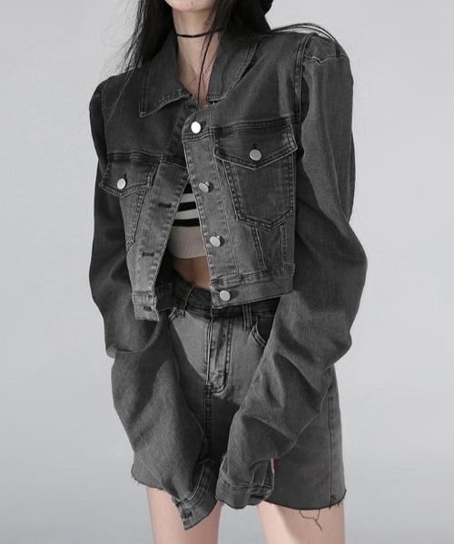 トレンド感のある着こなしに!ショート丈パフスリーブデニムジャケット ◆DETAIL◇ ふっくらとしたパフスリーブに加え、肘部分のギャザーが特徴的なデニムジャケットです。 よりボリューム感のある袖のデザインが、女性らしさを引き立てます。 トレンドのショート丈デザインで、どんなボトムスともバランス良く着こなせます。 程よいウォッシュ加工が施されており、ヴィンテージライクなこなれ感を演出します。 胸元のポケットと、シルバーのボタンがさりげないアクセントになっています。 ◆COORDINATE◇ ・同素材のミニスカートとセットアップ風に着こなすのがおすすめです。 ・ハイウエストのワイドパンツと合わせれば、スタイルアップ効果が期待できます。 ・ワンピースやスカートに羽織れば、カジュアルダウンしたミックススタイルに。 ・タイトなインナーを合わせれば、メリハリのあるシルエットが完成します。 ◆POINT◇ ・アウター ・デニムジャケット ・羽織り ・長袖 ・ショート丈 ・クロップド丈 ・パフスリーブ ・肘ギャザー ・レディース ・着回し ・デイリーユース ・春夏 ・秋冬 ・オールシーズン ・韓国ファッション ・韓国ストリート ・ストリート系 ・メンズライク ・Y2K ・モード ・カジュアル ・シンプル ・オーバーサイズ ・ヴィンテージ ・ウォッシュ加工 ------------------------------------------ 【サイズ展開】M/L 【1色展開】ブラック ------------------------------------------ ※着用身長によって画像イメージと異なる場合があります。 ※撮影環境により、実際のカラー、形状、デザイン等多少異なる場合がございます。 《 お知らせ 》 ▼商品のお気に入り登録お気に入りアイテムの値下げ・再入荷・在庫1点などの通知を受け取ることができます。 ▼ブランドのお気に入り登録新商品や再入荷、セール、クーポン配布などお得な情報を受け取ることができます。 是非、お気に入り登録してみてください!