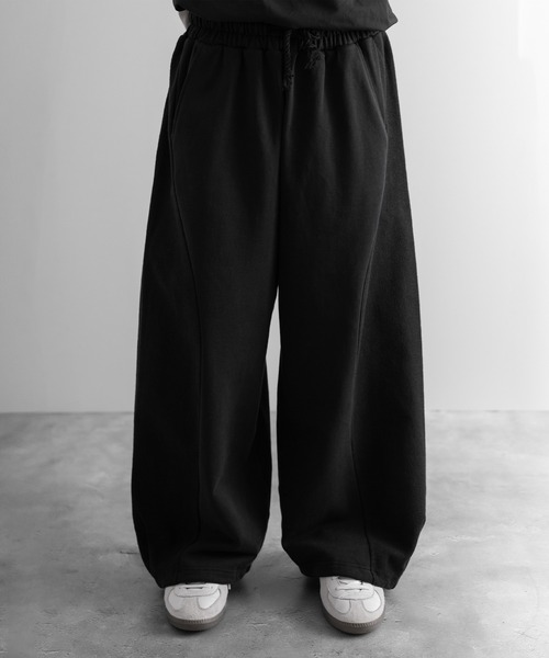-【RUUBON】New Item Release - 【タフな生地感で長く着用いただけるヘビーウエイトな裏毛素材】 超ヘビーウェイトの裏毛素材を採用し、タフな生地感で長く穿き込める仕様。 しっかりとした肉感があり、秋冬シーズンにも対応可能。 王道の杢グレーは裏面とのコントラストを楽しめるデザインに、ブラックは全体を同色でまとめた洗練された印象に。 ※着用や洗濯による若干の縮みが生じる可能性がございます。洗濯表示をご確認の上、お取り扱いにはご注意ください。 【表裏のコントラストで魅せる、こなれ感溢れるワイドスウェットパンツ】 トレンドのスウェットパンツに、RUUBONらしいこだわりのデザインを落とし込んだ1本が登場。 表地の表裏を身頃で切り替えることで、素材の表情にコントラストを生み出し、シンプルながらも奥行きのある仕上がりに。 シルエットは、裾にダーツを施すことで丸みを帯びたコクーンシルエットに。 単なるワイドパンツでは終わらせない、RUUBONならではの美しいフォルムを実現しました。 また、ウエストはゴム+スピンドル仕様でストレスフリーな穿き心地。 裾にはストッパーを付けており、シルエットのアレンジも自在。 フロントとバックにそれぞれ2つずつ、計4つのポケットを搭載し、実用性も兼備。 【男女兼用で使える万能スウェットパンツ】 丸みを帯びたコクーンシルエットが特徴のため、ゆとりのあるスウェットやフーディ、シャツと合わせることで全体にリラックス感のあるストリートスタイルが完成。 MA-1やデニムジャケットなど、丈の短いアウターと合わせることでパンツのシルエットが際立ち、メリハリのあるコーディネートに。 ワイドなシルエットに負けないよう、スニーカーは厚底やハイカット、ワークブーツなど存在感のあるものを選ぶとスタイリングが引き締まります。 【Attention】 ・この製品は素材の特性上、着用中の摩擦や、雨や汗などで濡れた状態での摩擦で色落ちしたり、他の衣類、淡い色のベルトやバック、ソファー等に色移りしますので十分にご注意ください。 ・下着等は同系色のものを着用されることをおすすめします。 ・色落ち、色移りしますので、他の物と一緒に洗わないで下さい。 ・独特な風合いを表現するため、製品洗い・特殊加工をしております。そのため、一点一点サイズ感や単一製品の中でも部位によって色目や加工感が多少異なります。 【ご使用上のお願い】 ・洗濯時、ネットを使用してください。 ・形をととのえてから干してください。 ・塩素系、酸素系の漂白剤は使用しないでください。 ・色落ちしますから他の物と分けて洗って下さい。 ・つけ置き洗い、濡れたままの放置は避けてください。 ・アイロン時はあて布をして下さい。 ・摩擦(特に湿った状態での摩擦)や雨・汗などで、他の衣料やバック等の周りのものに色移りすることがありますのでご注意ください。 【 RUUBON/ルーボン 】 素朴で飽きのこないデザインと体型問わず着やすいシルエットを追求。 日常にさりげない幸せをもたらすユニセックスブランド。 ▼商品のお気に入り登録 完売カラーの再入荷通知や、ラスト1点、セールの通知をお知らせいたします。 ▼ブランドお気に入り登録 新商品や再入荷など、いち早くブランドの情報を受け取ることができます。