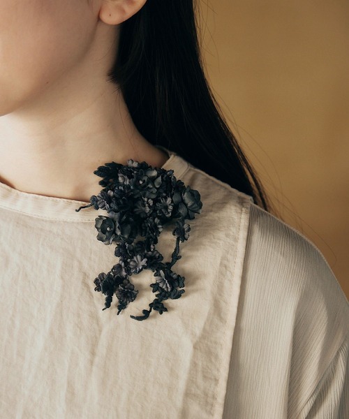 ・*:・ Petite floraison series・:*・ まるで小さな花束のように咲く、ミニアリウムのお花。 その愛らしさを、布花で一輪ずつ丁寧に表現した 「小さなお花のシリーズ」 ひとつひとつ丁寧に咲かせた 可憐で小さなお花たちをぎゅっと集めたデザインは どこか懐かしくあたたかな印象に。 ⚫︎コサージュ ふんわりと咲き集まったお花たちは 主張しすぎず、でもしっかりと、 やさしい華やかさを添えてくれるコサージュ。 お洋服にはもちろん、ストールやバッグに添えたり、 ヘアアクセサリーとしてもお使いいただけます。 特別な日だけでなく 普段使いにも取り入れやすいサイズ感。 ひとつひとつ丁寧に咲かせた m.soeurらしい静かな存在感をお楽しみください。 小さなお花のシリーズ ネックレス / ピアス / イヤリング / イヤーフック / コサージュ 【m.soeur(エムスール)*】 m.soeur(エムスール)は京都発のハンドメイドアクセサリーブランドです。 植物の美しさや生命力を表現しつつもお洋服に寄り添うような、ナチュラルでクラシカルなアイテムを 制作しています。 一点一点人の手で作り上げられる手作りのアイテムは温かみがあり、使い込むごとに味わいをましていきます。 ・*:・ ・:*・ ・*:・:*:・:*・ 【注意事項】 ※こちらは一部手染めを施している商品となります。シミのように見える部分がある場合がございますが、染めの色となり、アンティークな風合いを出すためのものですので、一点一点発色が少々異なった仕上がりとなっております。 ※手作業のため、画像の商品と色、形、大きさが多少異なる場合がございますので、予め御了承下さい。 ※色落ちする場合がございますので水や雨等には十分ご注意下さい。 ※大変デリケートなお作りとなっておりますので、お取り扱いには十分ご注意下さい。