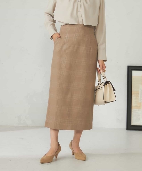 ◆さりげないラメが上品なチェック柄スカート◆ 【デザイン】 ・定番のナロースカートがチェック柄で登場 ・さりげないラメ入りで上品な印象 ・派手すぎず大人も着やすいデザイン ・通勤にもおすすめ ・トップスインでもアウトでも決まるハイウエストデザイン ・きれいなIラインシルエットでスッキリ見え ・ベージュとダークグレーの2色展開 【素材】 ・さらっとしたポリエステルレーヨン素材 ・ロングシーズン使えます 【コーディネート】 派手すぎないチェック柄スカートは きれいめなブラウスやコンパクトなニットと相性抜群。 オフィスにもおすすめ◎ -------------------- 透け感:なし 裏地:あり 伸縮性:ややあり 光沢感:チェック柄部分あり 生地の厚さ:ふつう -------------------- ≪お気に入り登録機能の使い方≫ ■商品のお気に入り登録(ハートマークをクリック) 再入荷通知や値下げ等、お得なご案内を受けることができます。 -------------------- ※商品画像は、光の当たり具合やパソコンなどの閲覧環境により 実際の色味と異なって見える場合がございます。 商品の色味の目安は商品単体の画像をご参照ください。