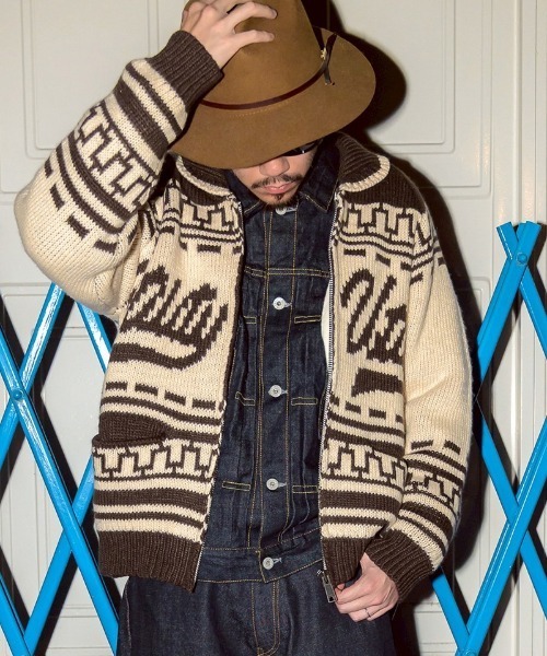ブランド初リリースのカウチンニット。肉厚で柔らかい表情のローゲージニットを使用しています。中央のutilityロゴのまわりを「U」と「T」で表現した幾何学調デザインが囲んだシンプルながら存在感のあるデザイン。幅広いインナーやボトムスと合わせやすく、今季は特にデニムジャケット、デニムパンツとのスタイリングを提案しています。