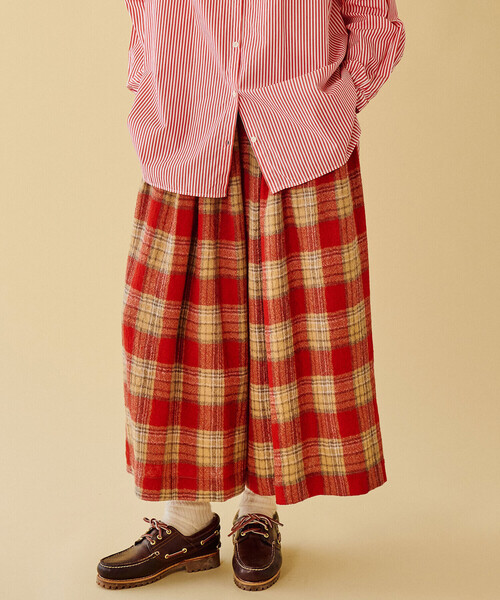 <デザイン> - ワイドシルエットのキュロットパンツ - サイドポケット×2 - ゴムウエストのイージー仕様 - 裏地無し <素材> - 温かみのあるウールフランネル - 季節感のあるナチュラルな風合い ※着用、お取り扱いの際は商品についておりますアテンションタグ、洗濯ネームを必ずご確認ください。 ※モデル撮影画像は、光の当たり具合やパソコンなどの閲覧環境によって、実際の色味と異なって見える場合がございます。商品の色味は商品単体で撮影した詳細画像をご参照ください。 メーカー品番:10220WC GALLEGO DESPORTES | ギャレゴ デスポート Virginie GallegoとFabien Desportesによって1993年に設立。「快適さ」を追求したコレクションはアンティークの影響を強く受けており、ヴィンテージのテキスタイルを新しい素材とミックスして使うことも。シンプルかつ緻密なパターンによるオリジナリティ溢れるデザインが魅力。