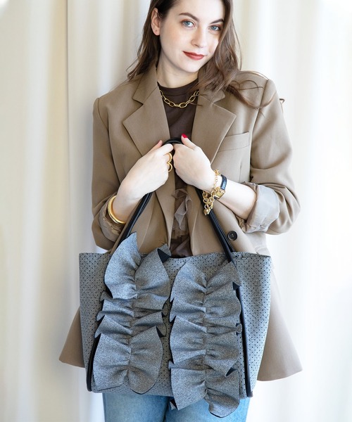 大胆にあしらった立体フリルが目を惹く、【U】のアイコンバッグ「Moelleux(モワルー)」Lサイズ。シンプルなコーディネートにプラスするだけで、一気に華やかさと女性らしさを引き立てます。A4サイズも収納可能な頼れる大容量で、通勤や習い事、ショッピングにも最適。柔らかな素材感と軽やかな持ち心地で、見た目の華やかさと実用性を兼ね備えています。カラーバリエーションはシックからフェミニンまで揃い、オン・オフどちらのシーンにもフィット。裏地は各色それぞれ違って、開けるたびにテンションがあがります。中に何が入っているかも一目瞭然です。毎日のスタイリングに“華やぐ存在感”を添える、特別なフリルトートです。一回り小さいサイズもあります。【0321401】で検索#Uバッグ #モワルー #フリルトート #大人フェミニン #華やかバッグ #軽量バッグ #A4対応バッグ #通勤バッグ #デイリーにも #収納力バッグ #30代バッグ #40代バッグ #存在感バッグ #特別な日のバッグ #エレガントバッグ【 U(ユー)】デザイナー Yuko Ohashiの琴線にふれインスピレーションされたマテリアルや手仕事を形にした作品です。ノアール(フランス語で黒)大人の女性を最も美しく見せる色をメインに、キラキラした人生がさらに美しく輝くための手段をご提案します。あなたの輝きが周りを華やかに、Yuko Ohashiと共に皆さんと楽しんでいくブランドです。※アルコールや塩素系などの消毒・除菌液が製品に付着すると、色落ちや変色・シミが発生する場合や劣化を早める原因になりますのでご注意ください。※画像の商品はサンプルです。実際の商品と色味、仕様、加工、サイズ、素材等が若干異なる場合がございます。※商品画像は、光の当たり具合やパソコンなどの閲覧環境により、実際の色味と異なって見える場合がございます。予めご了承ください。※末永く愛用頂く為に、アテンションタグ・洗濯ネームを必ずご確認の上、水濡れ(雨、汗など)による使用も色落ちや色移りの原因となる場合がございますので、取扱いには充分ご注意ください。----------------------------------------------------------------【簡単登録!お買い物に便利な機能】▼商品のお気に入り登録お好きなカラーの『♥』をクリックしてお気に入り登録!完売してしまった人気商品の再入荷情報やラスト1点・セール・再値下げなどの通知を受け取ることができます。登録商品だけが対象となる『あなただけのタイムセール』が開催されることも…!!▼お気に入りブランドに追加新商品や再入荷のご連絡、セールやクーポンなどのお得な情報をいち早く受け取ることができます!----------------------------------------------------------------