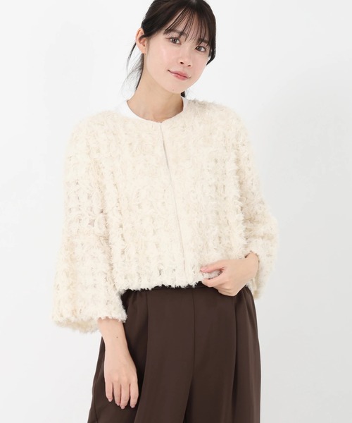 *クロスエンブロイダリー繊細なレース風刺繍を贅沢にあしらった、華やかで上品なショート丈の羽織り。 立体感のある生地感が軽やかに肌を透かし、フェミニンながらも大人らしい洗練された印象に。ショート丈のコンパクトなシルエットは、ワンピースやハイウエストボトムとバランスよく決まります。 軽やかに羽織れる薄手のデザインは、冷房対策や季節の変わり目にもぴったり。特別な日にも、デイリーにも活躍する一枚です。 洗濯:ドライクリーニング ●おすすめシーン 結婚式、披露宴、セレモニー、2次会(二次会)、1.5次会などのお呼ばれや、成人式、同窓会、謝恩会、婚活、街コンなどのパーティーシーンはもちろん、 デートや女子会、誕生日会、お食事会など。 20代・30代・40代・50代まで幅広いシーンで着回せます。 《お気に入り登録》はお得がいっぱい! 「商品」のお気に入り登録で、再入荷、ラスト1点、セールなどお得な通知を受け取ることができます。 「ブランド」のお気に入り登録で、新商品や再入荷などいち早くブランドの情報を受け取ることができます。 是非、この機会にご登録くださいませ。