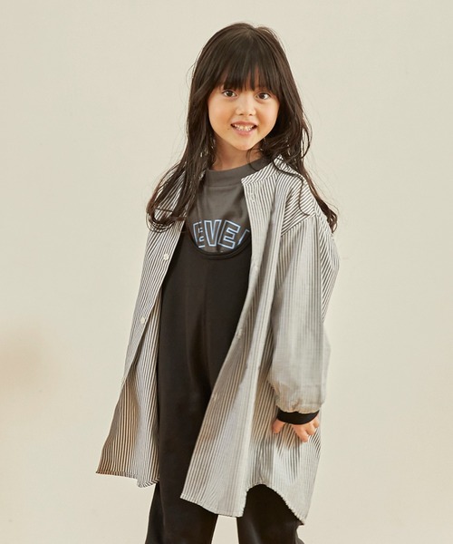 何かと重宝するシャツ。 フロントがラウンドしたデザインで、1枚で着用してもかわいいです。 長めのチュニック丈で体形カバーも◎ 細めのストライプがコーデのアクセントにも。 ----- 透け感:ややあり 伸縮性:無し ポケット:無し サイズ*M(110-120)・L(130-140)・XL(150-160)・F(レディース) ※Fサイズは価格が異なります。 MODEL 01 / 116cm / 18kg / M(110-120)サイズ着用 MODEL 02 / 115cm / 21kg / M(110-120)サイズ着用 MODEL 03 / 161cm / F(160-170)サイズ着用