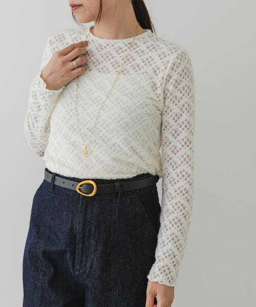 【一枚で旬顔に、透け感が可愛いレースプルオーバー】 起毛の透かしレースが、表情豊かなプルオーバー。程よい透け感が肌をきれいに見せ、女性らしい抜け感を演出します。柔らかく伸縮性のある素材なので肌触りも良く、リラクシーな着心地に。コンパクトなシルエットなのでトップスインもきれいに決まり、スタイルアップ効果も期待できます。これからの季節は一枚でさらりと着こなすのはもちろん、ワンピースやジャンパースカートのインナーとしても相性が良く、コーディネートの幅が広がる一枚です。 【F by ROSSO(エフバイロッソ)】 「母・妻・私 しなやかに行き来する服」をブランドコンセプトに、来する大人の女性に向けた、ユースフルなファッションを提案します。 【2025 Autumn/Winter】【25AW】 ※この商品は、デリケートなレース素材を使用しております。表面に凹凸のある物にこすったり、バッグやベルト、先の鋭い物に引っ掛けますと、ささくれや糸が浮きやすく、切れる事があります。 ※その他お取り扱いに関しましては、商品に付属のアテンションタグをご覧ください。 ※商品画像は、光の当たり具合やパソコンなどの閲覧環境により、実際の色味と異なって見える場合がございます。予めご了承ください。 ※商品の色味の目安は、商品単体の画像をご参照ください。 ▼お気に入り登録のおすすめ▼ お気に入り登録商品は、マイページにて現在の価格情報や在庫状況の確認が可能です。 お買い物リストの管理に是非ご利用下さい。 素材感 透け感 : あり 伸縮性 : ややあり 裏地 : なし 光沢 : なし ポケット : なし Free
