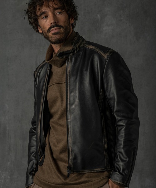 ♦【SHIFFON】Autumn / Winter Collection♦ デザイン性溢れるアイテムを取り揃えた【C DIEM】がZOZOTOWNに登場! これからの季節を彩るアイテムを手に入れるチャンス!! ヴィンテージ風の加工を施した、シングルライダースジャケット。 首に沿う形のダブルスタンドカラーや、運動量をもった脇の伸縮レザーリブなど、個性的・機能的なディティールをアクセントにしています。 素材には茶芯染の柔らかな羊革を採用。 表面の黒を落として下地の茶色が覗く加工をしており、ヴィンテージ風の風合いに仕上げています。 シンプルなデザインの中に、細かなディティールが光る一着です。 【C DIEM / カルペディエム】 ブランド名の由来は紀元前1世紀古代ローマの詩人、ホラティウスの詩に登場する語句(ラテン語)。 「その日を摘め(seize the day)」と訳され、「今この瞬間を生きる」などの意味を指す。 経年によって味と深みを増すことが皮革製品の基本的魅力であるが、カルペディエムのレザープロダクトに関してはその限りではない。 ファーストコレクションの発表以来、ファッションの域を超えて芸術品と評されるアイテム群は、デザイナーが全幅の信頼を寄せる1人の職人によって全行程手作業で作られ、製造段階で既に息が吹き込まれている。 私たちが手にするその瞬間も、“革が生きている”のだ。 厳選された1枚の革、刻まれた3本の皺、施された染めや加工の全てに、長い年月の間受け継がれてきたかのような歴史や、身につけることの喜びを感じ取ることができる。 伝統と技巧の全てを注がれて世に送り出される全ての製品は、クラフトマンシップの結晶そのものなのである。 それらは着用することによって再び新たな命を吹き込まれ、生き続け、手にする者の人生をその姿に反映して遂に完成されるのである。 ATTENTION ※実測値のため、多少の誤差はご容赦ください。 ※商品写真はできる限り現品を再現するように心がけていますが、ご利用のモニターにより差異が生じます。 あらかじめご了承くださいませ。