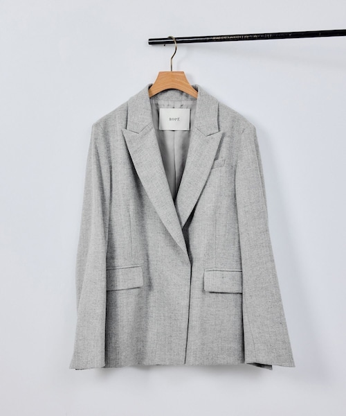 【デザイン・シルエット】 セミダブル仕立てのボクシーなシルエットのジャケットです。あえてディテールをそぎ落とし、クリーンな印象に仕上げています。素材の風合いを生かしたつくりで、ジャケットでありながら柔らかい雰囲気で着用いただけます。 【おすすめのスタイリング】 同素材のパンツ(品番: GGS35070)と合わせたセットアップスタイルはもちろん、軽やかなジャカードスカートとのコーディネートもおすすめです。ウエストにレザーベルトを合わせてウエストマークすることで、より洗練された雰囲気を演出できます。 【素材】 ソフトでふくらみのあるフラノ素材を使用。通常のフラノよりもツヤ感があり、高級感のある仕上がりです。さらに帯電防止加工を施すことで、粉塵や毛、ゴミの付着を防ぎやすくしています。 ---------------------------- 透け感:なし 裏地:あり 伸縮性:ややあり 光沢感:なし 生地の厚さ:中肉 ポケット:あり 開き方:ホック ---------------------------- 【モデル情報】 モデル身長:175cm 着用サイズ:38 【カシミヤ混フランネル シリーズ】 同素材でセットアップとしても着られる ウールフランネルイージータックパンツ(品番: GGS35070) ウールフランネルセミダブルジャケット(品番:GGV35070) がございます。 ※画像の商品はサンプルです。実際の商品と仕様、加工、サイズが異なる場合がございます。 ※撮影場所やライティング、お使いのモニター環境によって色の見え方が異なる場合がございます。 ※商品のカラーは画像の色味をご参照ください。動画は仕様説明のため、色味が実物と異なる場合がございます。
