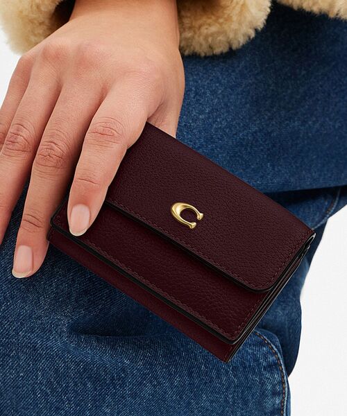 ミニ トライフォールド ウォレット コンパクトなデザインながら整理整頓がしやすい三つ折り財布。ポリッシュド ペブル レザーに、コーチの“C”のハードウェアがアクセントを添えます。 スナップボタンを開くと6つのカードスロットと札入れが広がり、外側には便利なマチ付き小銭入れも確保。ペブル レザーを採用することで厚みを抑えています。 【ぺブル レザーについて】 最新の技術を使用したクロムなめしと顔料染めで仕上げ、ぺブルエンボス加工を施した自然で高級感のある革。鮮やかな色も特徴です。耐久性が高く、傷と汚れが目立ちにくい上質な素材です。 ・ブランドの上質な革によるミニ財布 ・ポリッシュド ペブル レザー ・カードスロット x 6 ・札入れ ・スナップ開閉 ・外側にスナップ付き小銭入れ ・縦7.5cm x 横10.5cm x マチ2.5cm ※ご使用のパソコンやスマートフォンの画面設定や機種により実際のカラーと異なって見える場合がございます。 ※カラー名は管理用の表記であり、タグの表記と異なっております。 【COACHについて】1941年にニューヨークで創立したグローバルファッションブランドです。美しさと機能性を兼ね備えたコーチ製品には、熟練したクラフトマンシップが細部にまでに行き届き、最高の使い心地とスタイルをお届けします。コーチが誇るクラシック スタイルと優れたクオリティは、ニューヨーク マンハッタンのロフトで、80年以上も前、最初のコーチの革製品が作られた時に確立されたものです。1941年の創業から長い年月を経ても揺るがないコーチの本質。品質、耐久性、機能性、スタイルと言う四本柱がブランドをしっかりと支え、ジェンダーレスに使えるデザインも豊富にあり、ギフトにもおすすめです。クリエイティブ・ディレクターのスチュアート・ヴィヴァースのビジョンと、私たちのホームタウンであるニューヨークの、誰をも受け入れる姿勢(インクルーシブ)、そして勇気ある精神にインスパイアされ、誰もが自分らしくいられるように、永く愛される美しいものづくりを行います。
