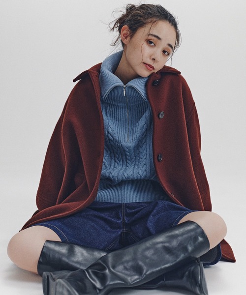 ざっくりとした糸を使用したケーブル編みがカジュアルな雰囲気のニット。ビッグカラーで顔まわりを華やかに見せながら、ハーフZIP付きで抜け感も演出します。中にシャツを着てレイヤードしたり、1枚着としても着回せるデザインです。スカートもパンツも合わせやすく、ボトムスを選ばずに着ていただけます。<素材>ウール混ミドルゲージのケーブルニットを使用しています。<詳細>仕様・前ファスナー裏地・なし透け感・なし / 光沢・なし / 伸縮性・あり生地の厚さ・普通●取り扱いについては、商品についている品質表示でご確認ください。●撮影はサンプル商品で行っている為、仕様とサイズが異なる場合がございます。●スタジオ及び屋外で撮影した着用画像は、光の当たり具合やご覧のモニターによって色味が違って見える場合があります。予めご了承ください。●生産時期により色・素材・サイズ感など多少異なる場合がございます。予めご了承ください。〇返品・キャンセルについて・着用・洗濯後の返品・ご交換は致しかねます。・商品到着後、着用または使用前に商品を確認して頂きますようお願いいたします。≪お買い物をよりお楽しみいただくために!≫・「商品のお気に入り登録」再入荷通知や、ラストの通知、セール通知も受け取ることができます。・「ブランドのお気に入り登録」新商品や再入荷をはじめ、タイムセールやクーポンなどいち早くブランドお得な情報を受け取ることができます。