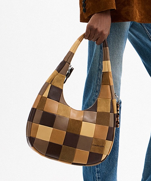 オルター/エゴ クレセント ショルダー バッグ ・アップクラフト(TM) スエード、アップクラフト(TM) レザー ・裏地:リサイクル ポリエステル ・内側にスナップ付きポケット ・ジップ開閉 ・ショルダー ストラップ、長さ28cm ・縦33cm x 横29.5cm x マチ7cm ・10インチタブレット、長財布まで収納可能 このショルダー バッグは、コーチのバッグの製造工程で、一枚革から裁断した後に残るフル グレイン レザーとスエード レザーのはぎれを、独創的に再利用して仕立てられたもの。 ファッションステートメントにふさわしい三日月型のスタイリッシュな存在でありながら、タブレットや長財布まで収まる実用的なサイズ感も魅力。ジップトップ開閉で、デイリーの必需品を安心して持ち運べます。パッチワークが生み出す一点一点の表情はユニークで、使うほどに風合いが深まります。 ※ご使用のパソコンやスマートフォンの画面設定や機種により実際のカラーと異なって見える場合がございます。 【Coachtopiaについて】グローバルファッションブランドのコーチから誕生した循環型ものづくりのブランドです。「Coachtopia」独自のデザイン哲学である「Made Circula(TM)」に基づいてデザインされた、バッグ、アクセサリー、レディ トゥ ウェアのオールジェンダーアイテムを提供しています。