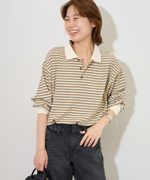 【2025AW】JOURNAL STANDARD relume◆表情のあるワッフル素材とボーダー柄がカジュアルな印象の襟付きプルオーバーソフトな風合いでワッフル素材が肌に優しく馴染む素材感。薄手なのでロンT感覚で着ていただけます。程よくオーバーサイズシルエットで、大人の抜け感がありながらも、ポロ襟がアクセントになり1枚でもサマになります。ジャケットのインナーにしていただいてプレッピーな雰囲気のあるスタイルもオススメです。※身丈採寸方法について首の横の付け根(サイドネックポイント)から裾までの長さ(リブ含む)※取り扱いについては、商品についている品質表示でご確認ください。 **********************透け感:なし裏地:なし伸縮性:ややあり光沢感:なし生地の厚さ:やや薄手**********************【スタッフ着用コメント】 《スタッフN》 身長:157cm/体型:普通/普段サイズ:S,M/着用サイズ:FREEサイズ感:全体的にゆとりのあるサイズ感。メンズサイズ程大きくはないです素材感:ワッフル素材できやすく、お手入れも楽そうです着心地:一枚着にはもちろん、ジャケットのインナーにして大人っぽく合わせるのもおすすめです※あくまでも個人の感想です**********************※照明の関係により、実際よりも色味が違って見える場合があります。またパソコン・スマートフォンなどの環境により、若干製品と画像のカラーが異なる場合もございます。※商品の色味は、商品アップ画像をご参照ください。本体:洗濯機洗い(弱)