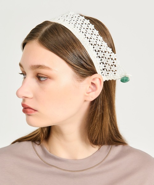 40~50年前のアーカイブ編み図を使用したケミカルレースを贅沢に取り入れたカチューシャ。もともと襟としてデザインされていたレースを活かし、自然なアールの形状をそのままカチューシャに仕立てました。首にかけてつけ襟アクセサリーとしても使用可能。襟先には、コスチュームジュエリー用に作られたデッドストックのストーンビーズをあしらい、アクセントをプラス。モノトーンやマニッシュなスタイリングにも馴染むカラーコンビネーションで、コーディネートに遊び心を添えるデザインです。【LA MAISON DE LYLLIS(メゾンドリリス)】『内面の美しい誇り高き女性』という花言葉を持つアマリリスから連想されるような女性のための帽子ブランド。シンプルながらアクセサリーとしてファッションを楽しんでいただけるアイテムが揃います。【お買い物をよりお楽しみいただくために】▽商品のお気に入り登録(ハートマークをクリック)完売カラーの再入荷通知や、ラスト1点の通知、値下げの通知を受けることができます。▽ブランドのお気に入り登録ESTNATIONのトップページ右上にある「お気に入りショップに追加」を押していただくと、新商品や再入荷など、いち早くブランドのお得な情報を受け取ることができます。