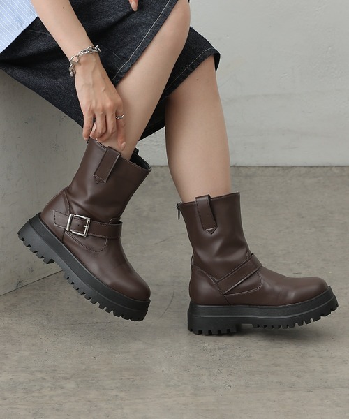 【ストリート・モード・古着系にもハマる万能エンジニアブーツ】太めのベルトやシルバーのバックル、重厚なラグソールなど、本格的なディテールをしっかり再現したエンジニアブーツです。無骨なデザインながらも、意外にどんなコーデにも馴染みやすく、シンプルなデニムからワーク系・モードファッションまで幅広く活躍します。軽量な厚底ソールで歩きやすさにもこだわり、クッション性もあるので、長時間の外出や通勤・通学にもおすすめです。背面のジップアップで脱ぎ履きも簡単。【商品ポイント】・ジップアップで脱ぎ履き簡単・タフで存在感のあるデザイン・クッション性のある厚底ソール----------------------------------------------------■素材甲材: 合成皮革底材: 合成底----------------------------------------------------※着用、お取り扱いの際は、商品についている品質表示とアテンションタグを必ずご確認下さい。※商品タグに記載されている商品名がWEBでの表記名と異なる場合があります。※実際の商品と仕様、加工、サイズが若干異なる場合がございます。※照明の関係により、実際よりもやや明るく見える場合がございます。またパソコンなどの環境により、若干製品と画像のカラーが異なる場合もございます。予めご了承くださいませ。【お気に入り登録】してお得な情報をCHECK!!・「商品のお気に入り登録」で再入荷通知や、ラストの通知、セール通知も受け取ることができます。・「ブランドのお気に入り登録」で新商品や再入荷など、お得な情報を受け取ることができます。