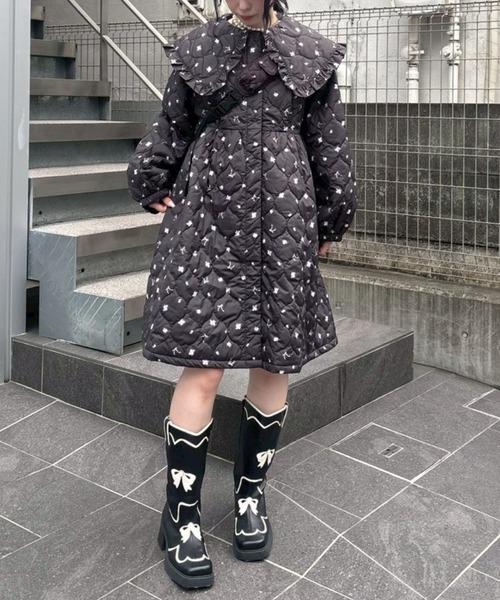 オリジナルのフラワーパターンをプリントしたキルティングコート。上品な光沢感のある薄手のエステルタフタ素材を使用しており中綿を薄く仕上げることで軽やかな着心地に。身頃にダーツを入れてシルエットにメリハリを持たせ着膨れして見えないようにデザインしました。衿は取り外し可能な2WAY仕様でノーカラーでもご着用いただけます。袖口はホールド感のあるゴム仕様で機能性も◎ガーリーな着こなしに最適なアウターです。・・・・・・・・・・・・・・・・・・・・・・・透け感:なし・伸縮性:なし・生地の厚さ:普通・裏地:あり・・・・・・・・・・・・・・・・・・・・・・・オフホワイト/白、アイボリー、ブラック/黒の3色展開【サイズ展開】・FREE(フリーサイズ)#カジュアル#ガーリー#花柄#キルティング#コート#アウター#2WAY#キャンスト#キャンスパ#CND●Candy Stripper/キャンディストリッパー●-BRAND CONCEPT-NO RULE, NO GENRE, NO AGE年齢や性別にとらわれず、自由に自分を表現出来る服【お買い物をもっとお楽しみ頂くために】▼商品のお気に入り登録▼完売カラーの再入荷通知や、ラスト1点通知、プライスダウンしたセール通知も受け取れる♪▼ブランドのお気に入り登録▼新作や再入荷等、いち早くブランドのお得な情報が受け取れる♪