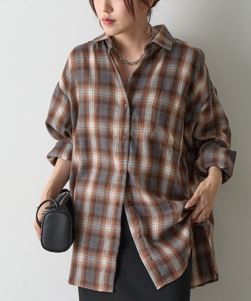 【軽やかな着心地と抜け感を両立。チェックオーバーシャツ】 やわらかな肌触りと軽い着心地が魅力のライトフランネルチェックオーバーシャツです。 ふんわりとした薄手のフランネル生地は、ほんのり暖かく、秋口から春先までロングシーズン活躍。 ほどよいゆとりを持たせたオーバーサイズのシルエットで、ラフに羽織るだけでこなれたスタイルが完成します。 トップスとしてはもちろん、羽織りとしてもオススメ。 デニムやスラックス、ワンピースなど様々なアイテムとも相性がよく、着回し力抜群のアイテムです。 【商品ポイント】 ・ライトアウターにもおすすめ ・着回し力抜群 ・秋口から春先までロングシーズン活躍 ---------------------------------------------------- ■商品特徴 洗 濯 方 法 :手洗い可 裏 地 :なし 透 け 感 :なし 伸 縮 性 :なし 光 沢 感 :なし 生地の厚さ:普通 ---------------------------------------------------- ■素材 ポリエステル68%, 綿25%, レーヨン7% ---------------------------------------------------- ※着用、お取り扱いの際は、商品についている品質表示とアテンションタグを必ずご確認下さい。 ※商品タグに記載されている商品名がWEBでの表記名と異なる場合があります。 ※実際の商品と仕様、加工、サイズが若干異なる場合がございます。 ※照明の関係により、実際よりもやや明るく見える場合がございます。 またパソコンなどの環境により、若干製品と画像のカラーが異なる場合もございます。予めご了承くださいませ。 【お気に入り登録】してお得な情報をCHECK!! ・「商品のお気に入り登録」で再入荷通知や、ラストの通知、セール通知も受け取ることができます。 ・「ブランドのお気に入り登録」で新商品や再入荷など、お得な情報を受け取ることができます。