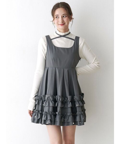 【CALNAMUR】2025 Winter pre order 【Design】 ボリューム感たっぷりのティアードフリルが目を引く、特別感のあるワンピース。 裾部分にあしらわれた立体的なフリルには小粒パールを散りばめ、華やかさと品の良さをプラスしています。 ウエストから広がるボックスプリーツがシルエットにメリハリを与え、スタイルアップ効果もインナーにブラウスやカットソーを重ねたレイヤードスタイルも楽しめ、シーズンレスに活躍します。 【Size】 F 【商品特徴】透け感:なし伸縮性:なし生地の厚さ:普通サイズ感:普通裏地:ありポケット:なしファスナー:あり(横)-------------------------------------------- 【CALNAMUR/カルナムール】 ブランドコンセプトは『優美な野心家』 それぞれが秘めている野心や希望、憧れを洋服として生活の一部に取り入れてもらえるよう、幅広いライフスタイルの方に着ていただけるブランド。 どこか可愛く、どこかヘルシー、ファッションを楽しみたい日のとっておきのワタシにプラスのAMOURを。 クリエイティブディレクター/藤田ニコル -《お気に入り登録》でお得な情報がいっぱい- ・商品のお気に入り登録 完売カラーの再入荷通知や、ラスト1点、セールの通知をお知らせいたします。 ・ブランドお気に入り登録 新商品や再入荷など、いち早くブランドの情報を受け取ることができます。 ≪Shopping Info≫ ※掲載画像の商品の色味は、屋外や屋内の光の照射や角度により実物と色味が異なる場合がございます。 スタジオでの詳細画像をご参照ください。 ※サンプルでの撮影の為、色味や仕様の変更点ございます、ご了承ください。 ※システムの都合上、販売価格と下げ札に1円誤差が生じる場合がございます。ご了承の上、ご購入をお願い致します。 ※生産の過程で1~2cm前後の個体差が生じる場合があります。 ※ご注文いただいた予約商品のお届け時期の確認は、注文履歴ページより行えます。