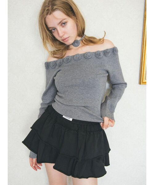 【CALNAMUR】2025 Winter pre order 【Design】 デコルテを華やかに彩る立体的なローズモチーフが印象的なオフショルダーのニットトップス。 肩まわりのフラワーデザインとリボンストラップが女性らしさを引き立て視線を惹きつけるアイキャッチな1枚です。 ややフィット感のあるコンパクトなシルエットが上半身をすっきりと見せてくれハイウエストボトムやボリュームスカートとも好相性◎ 【Size】 F 【商品特徴】透け感:なし伸縮性:あり生地の厚さ:普通サイズ感:細身裏地:なしポケット:なし-------------------------------------------- 【CALNAMUR/カルナムール】 ブランドコンセプトは『優美な野心家』 それぞれが秘めている野心や希望、憧れを洋服として生活の一部に取り入れてもらえるよう、幅広いライフスタイルの方に着ていただけるブランド。 どこか可愛く、どこかヘルシー、ファッションを楽しみたい日のとっておきのワタシにプラスのAMOURを。 クリエイティブディレクター/藤田ニコル -《お気に入り登録》でお得な情報がいっぱい- ・商品のお気に入り登録 完売カラーの再入荷通知や、ラスト1点、セールの通知をお知らせいたします。 ・ブランドお気に入り登録 新商品や再入荷など、いち早くブランドの情報を受け取ることができます。 ≪Shopping Info≫ ※掲載画像の商品の色味は、屋外や屋内の光の照射や角度により実物と色味が異なる場合がございます。 スタジオでの詳細画像をご参照ください。 ※サンプルでの撮影の為、色味や仕様の変更点ございます、ご了承ください。 ※システムの都合上、販売価格と下げ札に1円誤差が生じる場合がございます。ご了承の上、ご購入をお願い致します。 ※生産の過程で1~2cm前後の個体差が生じる場合があります。 ※ご注文いただいた予約商品のお届け時期の確認は、注文履歴ページより行えます。