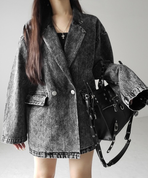 【 デニムセットアップ着用可能 】ヴィンテージケミカルブリーチボーイフレンドテーラードデニムジャケット/ vintage chemical bleach boyfriend tailored denim jacket