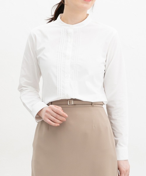 ストレスフリーな伸縮性 【デザイン】 程よい抜け感のスタンドカラーと、フロントのピンタックが上品なデザイン。 ウエストをほんのりシェイプさせた、すっきりめの美しいシルエット。 自分にぴったりが見つかる、S~3Lまで揃った豊富なサイズ展開。 【素材・機能】 洗濯後もシワになりにくくお手入れ簡単な『らくらくアイロン』素材。 伸縮性にも優れ、ストレスフリーな着心地。 【スタイル】 普段使いから通勤・通学まで、毎日大活躍。 品番:673-61-0058