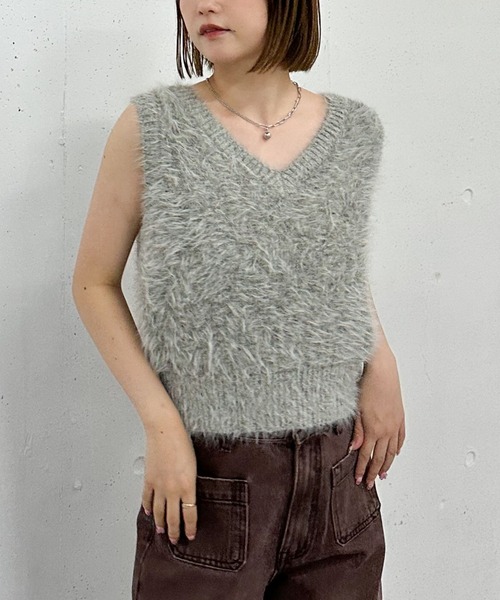 ■秋まで活躍するベスト■秋まで活躍するニットベストはレイヤードでも一枚でも可愛く着こなせます。ふんわりとした長い毛足のニットは肌当たりが柔らかく着心地◎コンパクトな丈感なのでスッキリと着こなせます。またVネックなので顔回りがよりスッキリ見えに。一枚で着るとヘルシーに着て頂けます。Tシャツやシアーインナーを重ねるとカジュアルな印象で着て頂けます。ーーーーーーーーーーーーーーー透け感:なし裏地:なし伸縮性:あり光沢感:なし生地厚さ:普通洗濯方法:洗濯可※詳しいお手入れ方法は商品についているタグをご覧くださいーーーーーーーーーーーーーーー※ご利用のモニター環境により、実際の色味と多少異なる場合がございます。… information … 欲しいitemをお気に入り登録(♡マークをclick) ・お買いのがし対策…完売itemの再入荷やラスト1点の情報をお知らせ ・欲しいitemをお得にget…pricedownになったらいち早くお知らせ ・スムーズ検索…ZOZOのお気に入りアイテムページで簡単checkできるから、再検索不要♪