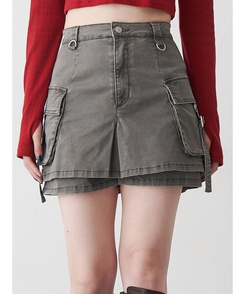 デザイン性の高いカーゴミニスカ インナーパンツで安心感も◎■アイテムウォッシュ加工を施したカーゴミニスカート。インナーパンツ仕様なので安心して着用ができ、デザイン性があるので穿くだけで洒落感溢れるスタイルに◎どんなトップスとも好相性でコンパクトなトップス合わせでスタイルアップしたスタイリングや、オーバーサイズのトップスからチラ見せするスタイリングもお勧めです。--------------------------------------------伸縮性:なし 生地の厚さ:普通裏地:あり サイズ感:普通--------------------------------------------【知って得する便利機能◎ 】■商品のお気に入り登録再入荷時、ラスト1点の時にお知らせします。■ブランドのお気に入り登録新商品やお得な情報など、いち早くお得な情報をゲット!ぜひご活用ください。※着用画像はフラッシュの加減で実際の製品と色味等が異なる場合がございますので、生地のズームアップ画像をご確認ください。※ご利用の端末画面の設定により実際の商品と色味が異なる場合がございます。