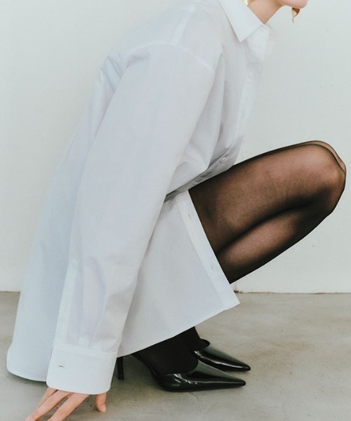 上品さとモードさを兼ね備えた、スタイルアップが叶うシャツ 綿100%の生地を高密度で織り上げ、シャツ地としてはやや厚みのあるしっかりとした風合いに仕上げました。 ほどよいハリとコシがあり仕立て映えする質感が魅力、きちんと感を持って着こなせる素材です。 オーバーサイズに仕上げることで、着るだけで縦長のラインを演出。 体のラインを拾いすぎずゆったりとした着心地でありながら、バスト下から入れたセンタープレスによってすっきりとした印象に仕上がっています。 後ろ裾はヒップがしっかり隠れる長めのカーブラインで、気になる部分も自然にカバー。 襟と袖口には千鳥ステッチをあしらい、ミニマルな中にもクラシカルなアクセントを効かせました。 さらに、シェルモチーフ&パールがついたチェーンアクセサリーが付属。 ボタンに通して自由に付け替えられる仕様にし、アクセサリー感覚で楽しめる遊び心のあるデザインです。 着る人の個性を引き立てる、モダンなバランスのシャツです。 ーーーーーーーーーーーーーーーーーーー 【洗濯表示】 家庭洗濯はお控えください 漂白処理はできません タンブル乾燥は出来ません 底面温度120℃を限度とし、スチームなしでアイロン仕上げができます 石油系溶剤又はデカメチルシクロペンタシロキサンによる弱いドライクリーニング処理ができます 【付属品】 スペアボタン 11.5mm 1個 ーーーーーーーーーーーーーーーーーーー ▼商品のお気に入り登録 お気に入りアイテムの再入荷や残り1点の通知を受け取ることが出来ます ▼ブランドのお気に入り登録 新作アイテムの入荷や人気アイテムの再入荷、 タイムセールやクーポンなど、いち早くブランドのお得な情報を受け取ることができます ーーーーーーーーーーーーーーーーーーー ※画像の商品はサンプルです。 ※商品を使用前に、タグ等に記載されている「取り扱い上の注意書き」、「洗濯表示」を必ずご確認ください。 ※商品画像は、光の当たり具合やパソコンなどの閲覧環境により、実際の色味と異なって見える場合がございます。 ※商品の色味は、スタジオ撮影の画像をご参照ください。 ※着丈は弊社寸法方法によりネックポイントから採寸しております。