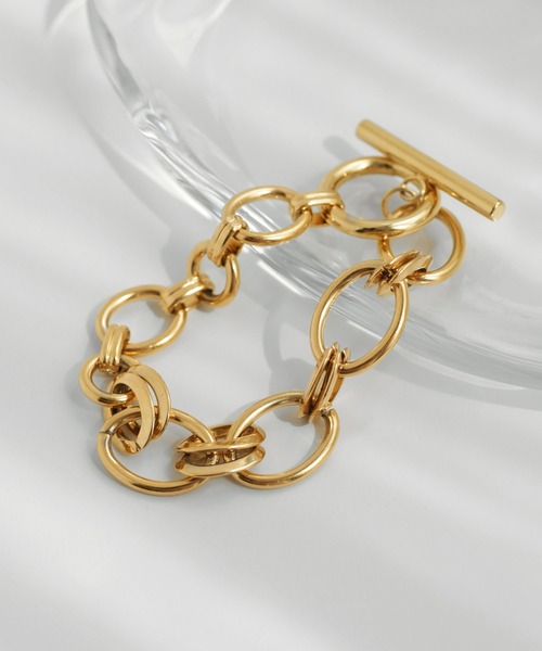 「ステンレス素材」のアクセサリーは、金属アレルギーや変色を起こしにくくデイリー使いにぴったりの優秀アイテム。2種類のチェーンをミックスしたデザインが、スタイリッシュな手元を演出するブレスレット。ボリュームのあるシルエットが、コーデにアクセントを与えます。※ATTENTION※■微細なキズや製造ムラはすべての商品に含まれます。■【ゴールド】は変色しにくい加工を施しておりますが、ご使用状況によっては変色する場合がございます。ご使用後は柔らかい布などでふき取りのお手入れや、メッキ製品同様の付け外しをお勧めいたします。■全ての方がアレルギーを起こさないという保証はできかねますので、万が一肌に合わない場合はご着用をお控えください。