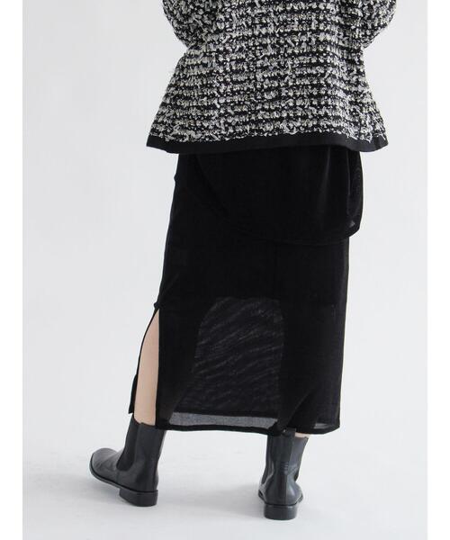 上品な光沢と起毛感のあるベロアで仕立てられたレイヤードスカート。ほんのり透ける軽やかなシアー感も、スタイリングにさりげない抜け感をプラス。ウエストゴムで穿きやすく、Iラインを描くシルエットですっきりとした印象に◎同シリーズのプルオーバーとセットアップでの着用も可能。落ち着いたトーンで合わせやすく、カジュアルにもキレイめにもスタイリングが楽しめるアイテムです。※商品画像は、撮影環境やお客様のご利用のPC・スマートフォンのモニター環境などにより実物と色味に差異がある場合がございます。【その他採寸】 F ウエスト:[ゴム仕様]68cm ★《お気に入り登録》でお得な情報をGET★① 商品ページ内のハートマークをクリック!② 以下通知が受け取れます!「再入荷」「ラスト1点」「特別セール」etc..\ブランド、ショップのお気に入りも是非!/