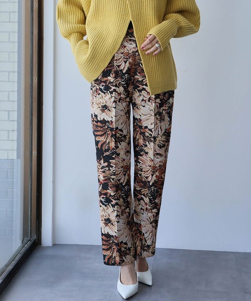 クラシカルな華やかさが魅力のゴブランフラワー柄のテーパードパンツ。 立体感のあるゴブラン織りに、落ち着いたフラワーパターンが上品さをプラス。 すっきりとした細身のテーパードシルエットで、キレイ目なスタイリングにぴったり。 シンプルなトップスと合わせるだけで、コーデがぐっと華やぎます。 素材 厚みとハリ感のあるゴブラン織りが、上質な存在感を演出。 裏地付なので肌当たりもよく、秋冬に映える重厚感のある1本です。 生地そのものに高級感があり、オン・オフ問わず大人のスタイルにマッチします。 詳細情報 厚み:□薄手 ■普通 □厚手 透け感:■なし □あり 光沢感:■なし □あり 伸縮性:■なし □あり(後ろウエストのみあり) 裏地:□なし ■あり カラー展開 ベージュ、グレー インフォメーション 【商品のお気に入り登録】 再入荷通知やラスト1点の通知、セール情報を受け取ることができます。 【ショップのお気に入り登録】 新商品や再入荷、お得な情報などを受け取ることができます。 ELFRANK ELFRANK(エルフランク)は、「Elegant(上品・優雅)」×「Frank(気さくな・身近な)」をキーワードに、 ライフスタイルに寄り添った新しいカジュアルスタイルを発信するブランドです。 日常のディテールにこだわり、自分らしさを楽しみ磨き上げていく... そんな女性に向けて、等身大の美しさと憧れを表現したファッションアイテムを提案します。 ※商品画像は撮影時の光や角度、お使いのモニター環境により実物の色味と異なって見える場合がございます。 ※記載のサイズは実寸サイズとなります。採寸箇所により、差が生じる場合がございます。 ※通販の特性上、発送上の状態によって商品にシワがついている場合がございます。 ※着用、お取り扱いの際は、商品に付いている品質表示とアテンションタグを必ずご確認ください。