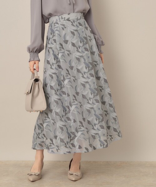オリジナルのリンドウのお花刺繍フレアスカート~POINT~一枚でスタイリングが着映える上品なアイテムです◎高級感のあるオリジナルの刺繍で周りと差のつくアイテムに!通勤はもちろんおでかけにもおすすめです【仕様】・ポケットなし・左脇ファスナー・ウエスト後ろゴム・裏地あり【素材・機能】メッシュ地にオリジナルのリンドウのお花の刺繍を施しています※照明の関係により、実際よりも色味が違って見える場合があります。また、パソコン・スマートフォンなどの環境により、若干製品と画像のカラーが異なる場合もございます。【スタッフコメント】・saori(153 )ブラウスやニットはもちろん、ジャケットとの相性も良くきちんとしたシーンでも活躍してくれる上品なフレアスカートです!イン・アウトどちらも大人可愛くキマります◎【25AW NEW ARRIVAL】【25AW NEW COLLECTION】モデル情報:身長163cm B85 W58 H92 着用サイズ:38(M)店舗へのお問い合わせ商品番号:508-74001●製品寸法:36(S):総丈82cm W64cm38(M):総丈84cm W67cm40(L):総丈86cm W70cm42(LL):総丈87cm W73cm備考:
