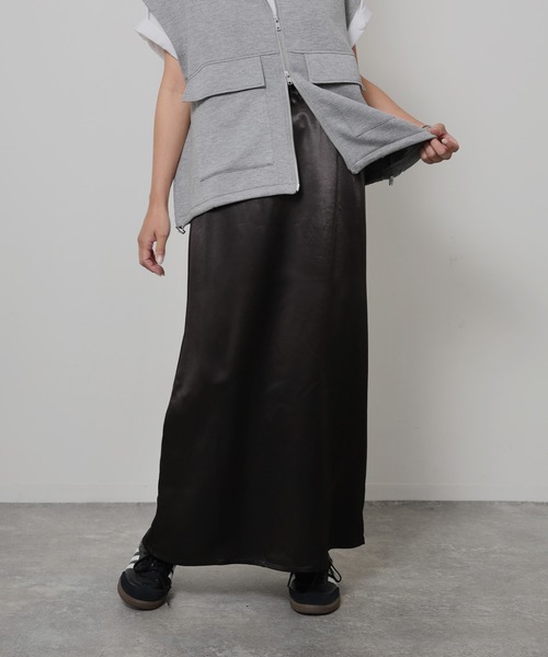 【Floran サテン セミフレアスカート】 \光が揺れる/ 足元まで優雅に演出 ■Styling 上品なサテンが揺れる、セミフレアスカートが登場しました。 足元で光を纏うセミフレアが柔らかなシルエットを演出。 ウエストはゴム仕様でリラクシーな穿き心地。 ニットやカーディガンでフェミニンカジュアルに、シャツを合わせてモード寄りもオススメです。 スニーカーやブーツで外すと都会的な印象に◎ 足元まで流れるセミフレアシルエットはどんなトップスとも相性抜群。 上品さと女性らしさを兼ね備えた一枚です。 ■Detail ウエストはスッキリ見えるゴム仕様でシルエットを美しく。 セミフレアの揺れが動きに変化をもたらし存在感のある1枚に。 上品な光沢がコーディネートに華やぎをプラスしてくれます。 ■Material 光沢感のあるサテンポリエステル100% 軽やかでドレープ性が美しいです。 光の角度で表情を変える素材感が静かな主張を演出 ▽生地感 透け感:あり 〇〇〇●〇 なし 生地の厚さ:厚い 〇〇〇●〇 薄い 裏地:なし(アイボリーのみあり) 伸縮性:なし ※この素材は摩擦(特に湿った状態での摩擦)や、汗や雨などでぬれた時は他の衣料や下着・バッグなどに色が移る場合がありますので、ご注意下さい。 ※繊細な素材を使用している為、引っ掛かりには十分お気をつけください。 ※洗濯の際は、他の物と一緒に洗わないでください。 ※濡れた状態で他の洗濯物を重ね合わさないでください。 ※漂白剤および漂白剤入りの洗剤のご使用はお避け下さい。 ※水洗いやクリーニングの際は、クリーニングネットを使用ください。また、つけおき洗いはお避けください。 ※商品の梱包には細心の注意を払っていますが、通販の特性上、到着時に畳みシワがついている可能性がございます。予めご了承ください。 ※詳しいお手入れ方法は商品タグをご参照ください。 ※この商品は、糸及び編組織の性質上、引っかけ・引っかかりやすい性質をもっております。着脱時には十分ご注意下さい。 【Information】 ◆《お気に入り登録》がオススメ◆ ・「商品のお気に入り登録」で再入荷通知や、ラストの通知、セール通知も受け取ることが出来ます。 ・「ブランドのお気に入り登録」で新商品や再入荷など、お得な情報を受け取ることが出来ます ※撮影時のライティング、太陽光、ご覧になっているモニター・PC環境により、実際の商品と色味が異なって見える場合がございます。予めご了承をお願い致します。