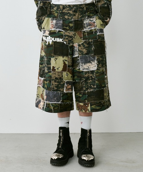 【PALEDUSK×AIVER カモボロワイドクォーターパンツ】 アーティスト"PALEDUSK"とのコラボレーションアイテム ・ウッドランド・デジタルカモ・リアルツリー・デザートカモなど5種類のカモフラージュ柄をパッチワークしたAIVERオリジナルのカモボロ生地 ・つなぎ合わせた箇所は断ち切りになっているため、最後にウォッシュ加工を施すことで更にボロボロにしたデザイン ・裾に掛けて大きく広がったワイドシルエットとひざ下のハーフ丈 ・裾内側にストッパー付きのドローコードを取り付け裾幅変更可能 ・ウエストはシャーリングゴムと内側には調節可能な紐を施しベルトなしでも着用しやすい仕様 ・ベージュにはオレンジ、ダークカーキにはブラックの紐 ・ベルトループも備えベルト着用も可 ・後ろ側ベルトループのみ太くしっかりベルトを固定 ・YKKジップフライ ・サイドポケット、ヒップポケットの角にマットシルバーのリベットを打ち付けた仕様 ・ヒップポケットは縦約21cmの大き目サイズ ・左ヒップポケットにAIVERのピスネーム付き ・PALEDUSKのロゴをサガラ刺繡にAIVERのAのロゴを重ねて刺繍した特別仕様 <同じデザインでPALEDUSK×AIVER カモボロワ3WAYフードシャツ(問い合わせ番号/AC00000109)もあります。> <問い合わせ番号/ACCRA254002/AC00000110> <補足スペック> ・ウエスト S/62cm~70cm M/70cm~78cm L/78cm~86cm ・ヒップ(上から20cm下位置) S/100cm M/108cm L/116cm ※目安です。 【PALEDUSK/ペイルダスク】 新時代を担う若手最重要バンド メタル/ハードコアサウンドを基にしながらも幅広く多様なジャンルのエッセンスを取り入れ、独自のPaleduskサウンドを確立。ライブ活動に焦点をあて、ジャンルにとらわれずさまざまな方面のアーティストと積極的に共演、より活動の場を広げる中で、多数の海外アーティストとの共演も増え、エネルギッシュで爆発力のあるライブパフオーマンスは見る者を魅了しており、その進化はとどまることを知らない。 Vo.KAITO / Gt.DAIDAI / Gt. TSUBASA / Dr.BOB ※パッチワークのため、色や生地の配置は1点1点異なります。 ※加工を施しています。色落ち・色移りには十分ご注意ください。 ※切りっぱなしの生地を使用しています。デザイン上ほつれていますが不良品ではありません。 ※洋服の形になってから加工を施しているため、袖口など生地が重なっている箇所は色むらがあります。 ※画像つきましては、光の反射などによって実物と色味が異なって見える場合があります。 ※商品画像はサンプルの為、色味やサイズ等の仕様に変更がある場合があります。 ※繊維製品の為1~2cmの誤差がある場合があります。予めご了承下さい。 <商品のお気に入り登録> 再入荷、残り1点、セールなどの通知を受け取ることが出来ます。 <ブランドお気に入り登録> 新商品や再入荷、ショップのおすすめトピックスなど、 いち早くブランドのお得な情報を受け取ることが出来ます。