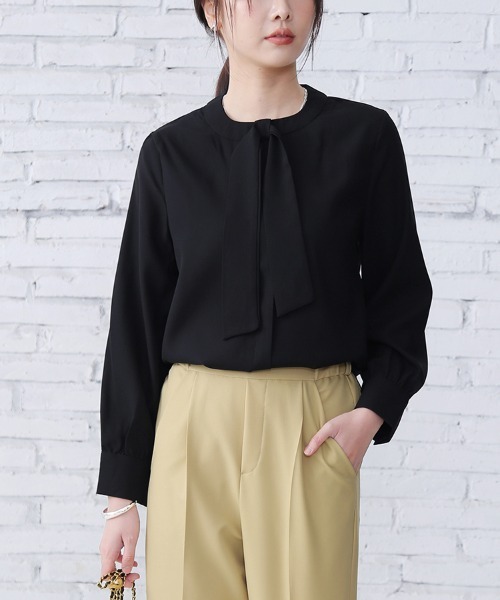 肌馴染みの良い柔らかい素材を使用し、ロングシーズン通して着回せるストレスフリーな着心地。ボウタイネック風の襟で、一枚で上品で女性らしい印象を醸します。首元できちんと感を出しつつ、ボタンレスなしのデザインで抜け感をプラス!後にはさり気ないファスナー付きなので、着脱も楽々。オフィスコーデにはもちろん、フォーマルシーンにも使える優れものアイテムです。……………………透け感:なし厚さ:ふつう伸縮性:なし裏地:なしポケット:なしモデル:身長:160cm/163cm(着用サイズ:M)洗濯方法:手洗い可/洗濯機可……………………※詳しいお手入れ方法は商品タグをご参照ください。★お買いものをよりお楽しみいただく為に!★◆商品のお気に入り登録お気に入りアイテムの完売カラーの再入荷通知や、ラスト1点の通知、セールの通知も受け取ることができます。◆ブランドのお気に入り登録新商品や再入荷など、クーポン配布などのお得な情報を受け取ることができます。※商品画像は撮影時の光や角度により、実物の色味と異なって見える場合がございます。※撮影はサンプル品を使用しており、表示のサイズ感も実物とは若干異なる場合もございますので、予めご了承ください。※生産時期により色・素材・サイズ感など多少異なる場合がございます。予めご了承ください。"