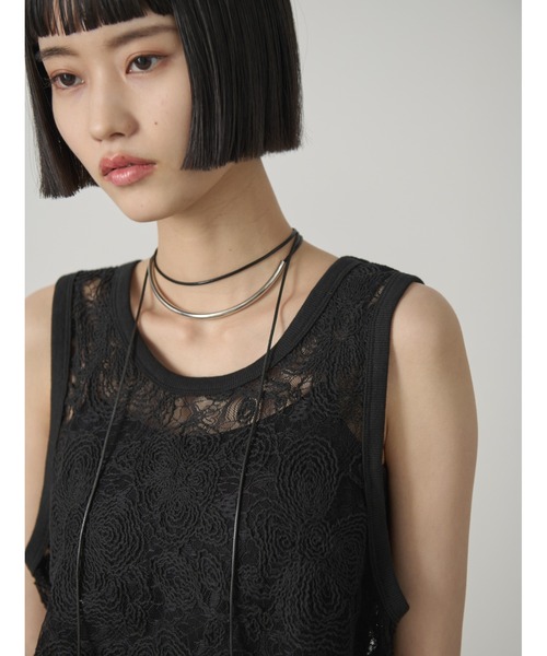 ー ディテール ー繊細で上品なレースに旬のコード刺繍が映えるタンクトップ。ゆとりのあるサイズ感でヘルシーに着用できるのも魅力。【色味に関しての注意事項】商品画像は、ストロボなど撮影機器の使用や光の当たり具合、お使いのスマートフォンやパソコンなどの閲覧環境により、実際の色味と異なって見える場合がございます。予めご了承ください。【SNS動画掲載アイテム】@aic_official上記の公式インスタグラムアカウントにて着回し動画を掲載しております。是非ご覧くださいませ。★お取り扱い注意事項★下記をご確認いただきご了承の上、ご購入ください。・こちらの商品はデザインを重視したデリケートな素材を使用しているため、引っ掛かりなどで糸がつりやすくなっております。・着用中の摩擦などにより、ピリング(毛玉)が生じる場合があります。・洗濯の際は色落ちしますので単独で洗い、湿気を含んだ状態や水につけたままで放置しないでください。・濃色の製品は、摩擦や汗、雨などで濡れると、ほかの衣料に色移りする場合がございますので、充分ご注意ください。・商品の写真はサンプル品を撮影している為、実際の商品とは仕様や加工、加工によるダメージ、サイズ等が若干異なる場合もございます。・初回販売分と生産時期の異なる商品は、色味や加工等若干異なる場合がございます。・システムの都合上下げ札の税込み価格表記が商品ページの税込み価格と1円ずれている場合がございます。・掲載画像の商品の色味は、屋外や屋内の光の照射や角度により実物と色味が異なる場合がございます。また表示のサイズ感と実物は若干異なる場合もございますので、 ・着用、お取り扱いの際は、商品についている品質表示とアテンションタグを必ずご確認下さい。