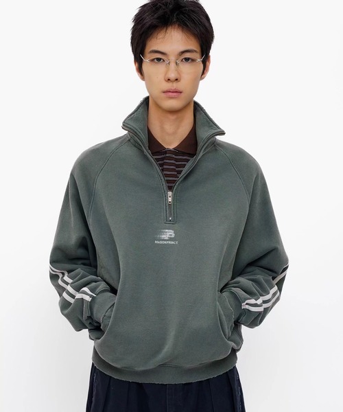 ■オーバーサイズ×ハーフZIPスウェットで魅せる最旬ネオストリートスタイル!! 袖のライン柄などスポーティなディテールを取り入れたハーフZIPスウェット。 オーバーサイズのラグランシルエットで、ゆったりと着用できます。 スタンドカラー仕様で首元までしっかりカバーし、ジップの開閉で着こなしに変化をつけられます。 背面のバックプリントもワンポイントに。 コットン100%の生地感で長いシーズン着用していただけます。 着丈のバランスなど、計算し尽くされたルーズになりすぎない絶妙なシルエットに中毒者続出! ユニセックスで着用いただけます。 【MASONPRINCE/M.P Studios】 デザイナーMASONとPRINCE兄弟が手掛ける新進気鋭のコンテンポラリーブランド。 世界各地を旅し、様々な異文化に触れ感じたものを独自のフィルターを通し、 現代のファッションシーンに"neo street style"の新たな価値観をもたらす。 全てのアイテムを徹底管理された自社工場で生産する事によって、 MADE IN CHINA の常識を覆す高品質な素材、拘り抜いた縫製で採算度外視の商品供給が可能に。 2024年5月8日より「M.P Studios」はブランド名変更に伴い、 正式「MASONPRINCE」に名称変更させていただくこととなりました。 購入時に付いておりますブランドタグに関しましては、 「MASONPRINCE」と「M.P Studios」が混在している場合がございます。 どちらであっても商品自体に問題はありませんのでご了承ください。 ■取扱注意事項■ ※サイズは、測定方法と測定者によって多少の誤差がありますのでご了承下さいませ。 また体型によって、サイズ感に個人差がございます。(平置き採寸) ※商品によってはシワがつきやすく、畳みジワや折りジワなどが強く出る場合がございます。 その際は加湿した風呂場に数時間干すか、スチームアイロンでのお手入れをお勧めしております。 ※生地の素材上、においが気になる場合がございます。 その際は陰干しして頂くと、ほとんど感じにくくなります。 ※レース等の繊細な素材を使用している場合には、お取り扱いにご注意下さい。 ※デニムを使用した製品は、インディゴ染めをしています。汗や摩擦により移染しやすいので、白色、淡色の組み合わせや重ね着はお避け下さい。 ※後染めや色染めの商品に関して、製品によっては染料の特性上、湿った状態や汗をかいた状態での長時間の放置、 または摩擦により、他のものへ色移りする恐れがありますので、着用時にはご注意下さい。 お洗濯は洗濯ネットを使用し、他のものとの混合洗いはお避け下さい。色落ちや色移りの原因となります。 ※ニット素材を使用した製品は、重みで伸びやすくなりますのでハンガーでの保管はお控えください。 ※お洗濯の際には、品質表示の指示に従ってください。必要であれば専門店にご相談ください。 家庭でご洗濯できる商品に関しては、洗濯専用ネットをご使用の上、個別での洗濯をお勧めいたします。 お色物は、色移りする可能性がございます。 ※着用画像は撮影状況や光によって、多少異なる場合がございますので、置き画像をご確認下さい。 ※2023年7月1日より、環境に配慮した取り組みの一環として、紙のアテンションタグを廃止しております。