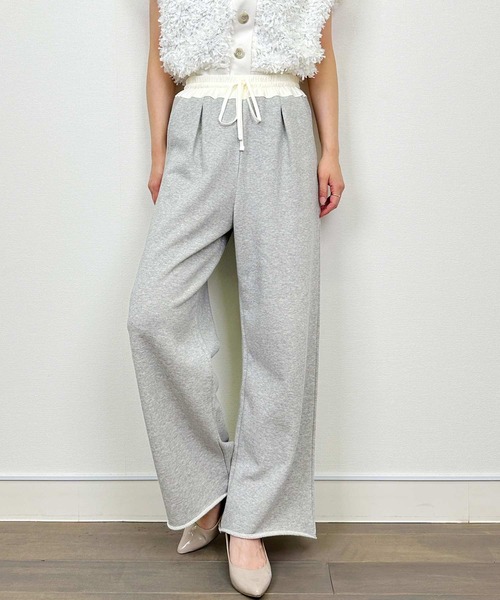 リラックスコーデにぴったりな配色スウェットパンツ生地は、コットン100%の国産裏毛素材を使用。ほどよい厚みとドライな肌触りで、一年を通して心地よく履けます。ゆるすぎず、細すぎないミディアムストレートの形は、体のラインを拾いすぎず、すっきり見せてくれる絶妙なシルエット。ウエストは総ゴム+紐付きで、着るたびにちょうどよくフィット。異素材の切り替えが、さりげないアクセントになります。裾はあえて切りっぱなしのデザインで、こなれたカジュアル感をプラス。前にタックを入れているので、カジュアルな中にも大人っぽさが光ります。ポケットはサイドと後ろに1つで便利さもきちんと。ブラックとグレー、どちらも着回しやすい定番色。カットソーやニットでとことんカジュアルを楽しんだスタイルはもちろん、シャツやジャケット等でヌケ感のあるスタイルを楽しむのも◎【詳細情報】厚み:□薄手 ■ふつう □厚手透け感: ■なし □あり光沢感: ■なし □あり伸縮性: □なし ■あり裏地: ■なし □ありポケット:□なし ■あり重量: 約460g※撮影場所や明るさにより実際の商品と色味が若干異なる場合がございます。 ☆商品のお気に入り♡登録を押せば”再入荷通知”や”残りわずか通知” 値下げのお知らせが届きます!お気に入りのブランド登録していただければ新商品入荷のお知らせも届きますので是非登録してみて下さい。