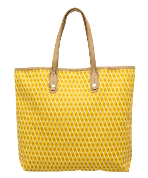 本体は綿オックス生地にプリント、仕上げにPVC加工、加えてシボ型押しを施すという凝ったもの。 トーンをややシックに馴染ませたカラーリングにして、さらに裏地貼りをなくした分、軽量化も図っています。 初夏スタイルでは肩掛けも想定していますが、基本的には手提げ、ハンド持ちの バランスがいいように考えました。 口元がファスナー仕様の使いやすいベーシックなトートだから、天候にも心強く、シーズン のヘビーローテーションバッグとなること間違いなしです。