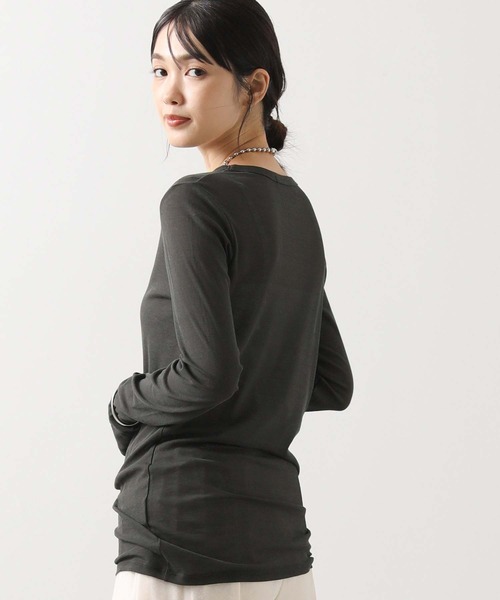 【Munich(ミューニック】から、トレンドのシアーな素材感が魅力のクルーネックインナーをセレクト。薄手で透け感があり、ストレッチ性抜群のコットンのフライスを使用していて、肌に直接触れてもストレスなく、心地良く着られます。袖口がクシュっと緩むので、チラリと見せるスタイリングにおススメ。小さすぎず、大き過ぎずないサイズ感にこだわった1枚。すっきりと薄手で、ほんのりシャリ感のあるシアーフライス素材を使用。 ガス焼きをする事で毛羽を出来る限り無くし、80/強撚糸を使用することで独特のシャリ感と清涼感が出て肌離れのいい質感に。フライス編みにする事で伸縮性にも優れ、着心地のよいオールシーズン向けのシアーアイテムに仕上げています。【Munich(ミューニック)】「大人の女性のカジュアル」をキーワードに、Munichを着た女性が可愛らしく、HAPPYな気分になれるような服作りをブランドの大きなテーマとしています。 すべてのアイテムはベーシックでシンプル、だけどさりげなく主張あるデザイン。シルエットやディティールの細部へのこだわりを随所に織り込み、トレンド感や素材・サイジング・ディティール・カラーなど全ての要素がバランスよく調和された、どんなスタイルにもマッチする服作りを行っています。※商品画像は、光の当たり具合や使用しているパソコンのモニターやスマートフォン等の設定により、現物と画像の色味が若干異なる場合もございます。予めご了承ください。【 お買い物をもっと楽しんでいただく為に 】▼商品のお気に入り登録▼完売カラーの再入荷や、ラスト1点、セールの通知をお知らせします。割引クーポンの発行などお得な情報も!▼ブランドのお気に入り登録▼新商品や再入荷など、いち早くグレディブリリアンのお得な情報を受け取ることができます! 【Gready Brilliant】「ほどよい存在感」を大切にする大人の女性のためのセレクトショップ。