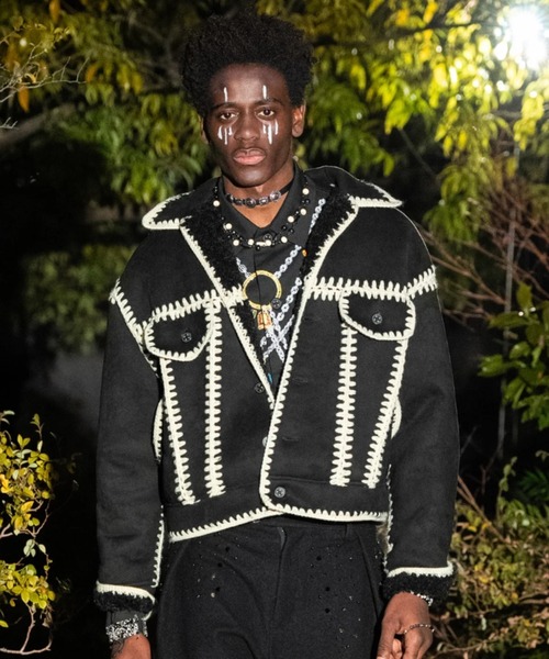 HAND KNITTING BOA BLOUSON素材は裏ボアのエコスエード生地を使用しています。Gジャンの3rd タイプをベースにシルエットは 60年代特有の着丈を短めに設定されています。全てのシーム部分には一つずつ穴を開け、かぎ針編みを 組み合わせて全て手作業で接ぎ合わせた一着。シルエットはゆったりとしています。ブランド10周年の25FW。ヨーロッパ諸国で数世紀にわたって伝承されてきた祝祭に着想し、「AMULET(お守り・魔除け)」をテーマに設定。表情豊かなハンドクラフトから最新技術の活用まで、ブランドが10年間育ててきた様々なテクニックで、アモクらしい温かみのある「温故知新」を体現したコレクションになっています。amok /アモクDesigner : 大嶋 祐輝 氏Production Area : Japanamok [アモク]は、デザイナー 大嶋祐輝(YUKI OSHIMA)が2015年に設立。「古き良きものを壊し、新しい技術などを用いて、人間の奥底の感情に響くような洋服をデザイン」がコンセプト。【お買いものをお楽しみいただく為に】▼商品のお気に入り登録完売カラーの再入荷通知や、ラスト1点の通知、セールの通知も受け取ることができます。▼ブランドのお気に入り登録新商品や再入荷など、いち早くブランドのお得な情報を受け取ることができます。