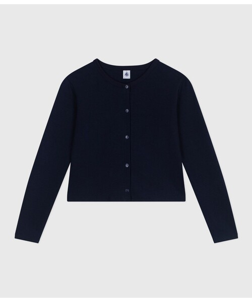 プチバトーの定番カラー、ネイビーを配色したカーディガンです。シンプルなデザインでどのアイテムとも合わせやすくこれからの時期重宝します。ブランドロゴをあしらったボタンがデザインのワンポイントに。同素材のパンツと合わせたセットアップコーデもおすすめです。※濃色の製品は、摩擦や洗濯の際に色落ちや色移りをする場合があります。中性洗剤で単独洗いをしてください。
