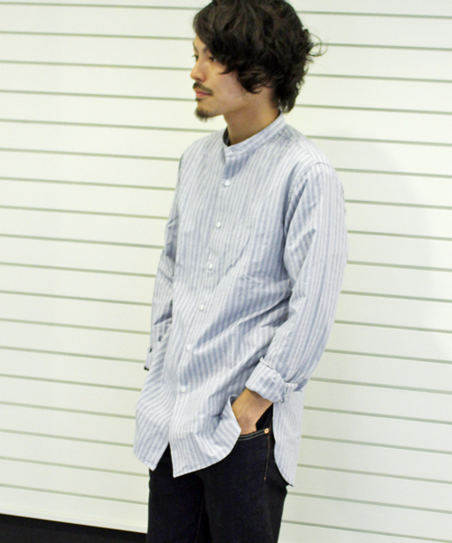 秋冬シーズントレンドのロング丈のバンドカラーシャツです。 ローン素材のサラッとした質感と着心地で晩夏から秋冬までシーズン関係なくお使い頂けます。 Tシャツの上から羽織感覚で使ったり、秋冬はインナーとして使えるアイテムです。 ※店頭及び屋外での撮影画像は、光の当たり具合で色味が違って見える場合があります。 商品の色味はスタジオ撮影の画像をご参照ください。 ブルー着用スタッフ身長:170cm 着用サイズ:36