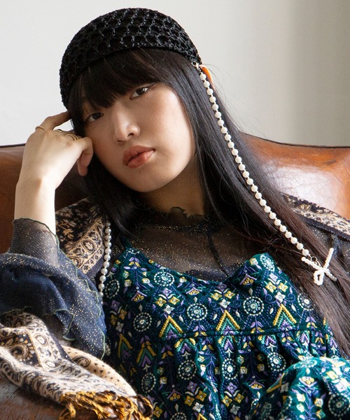 ヒッピーテイストなかぎ針編み帽子。 プラパールチェーンとリボンモチーフが、一味違った個性的なスタイルを演出。 遊び心のあるデザインで、華やかなコーディネートに◎ ・プラパールチェーンは取り外しも可能です。 ※こちらの商品は1点1点職人による手作りとなります。その為、形や色合いなど若干異なる場合がございます。あらかじめご了承ください。※屋外での撮影画像は、光の当たり具合で色味・カラーが違って見える場合がございます。商品のカラーは、スタジオ撮影の画像をご参照ください。 Amina Collection Co.,LTD.