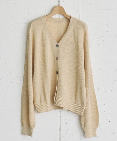 季節の変わり目にちょうど良いシンプルカーディガン【point】・袖にボリューム感があり程よくゆとりあるシルエット・カノコ編みで目が詰まっていないので少し透け感があり重たくならないのがうれしい・スカートもパンツも合わせやすい着丈とサイズ感【fabric】・カノコ編みの少し透け感があり毛羽立ちにくい生地感・さらさらとした落ち感のある素材透け感:若干あり裏地:なし伸縮性:あり光沢感:なし生地の厚さ:普通【注意事項】・画像の商品はサンプルです。実際の商品と仕様、加工が若干異なる場合があります。・サイズ表記はあくまで目安となります。・取り扱いについては、商品についている品質表示でご確認ください。・照明の関係により、実際より明るく見える場合がございます。またパソコンなどの環境により、製品と画像のカラーが若干異なる場合がございますので、予めご了承くださいませ。■お気に入り登録がオススメです!■《商品のお気に入り登録》カラー・サイズ選択の横の「♡」をクリックで簡単に登録できます完売カラーの再入荷や在庫が1点になったとき、セールになったときに通知をお届けします《ブランドのお気に入り登録》ページ上部のブランド名の「♡ お気に入りブランドに追加」をクリックで簡単に登録できます新商品の情報やイベントなどお得な情報をいち早くお届けします是非、ご登録お願いします♪