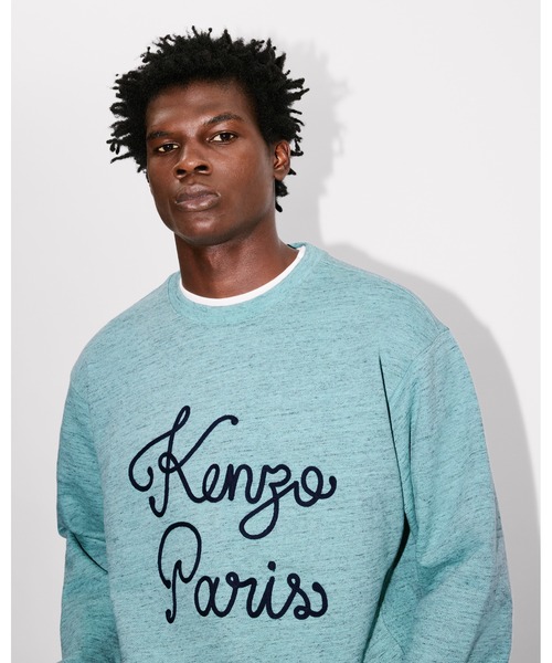 「KENZO Paris Chainstitch」 エンブロイド スウェット ソフトストレッチの効いた無起毛モルトン チェーンステッチ「KENZO Paris」 刺繍 リブサイドパネルと裾に大きめのリブ男性モデル:身長185cm、着用サイズ:Mクラシック フィット