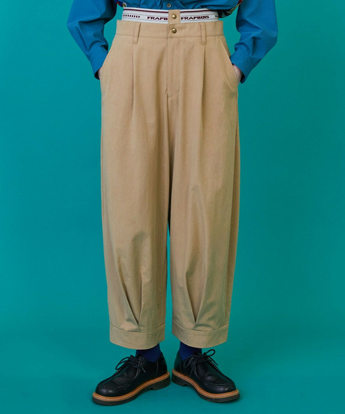 【素材】 綿の膨らみ感とテンセルの持つしなやかで肌触りの良さが特徴のツイル素材は柔らかな光沢感と程良いカジュアル感が特徴。 【デザイン】 ヒップから太ももにかけてゆとりを持たせたコクーンシルエットのパンツは裾に入ったタックが動きのあるシルエットをつくっています。 ウエスト部分はゴムのジャガードベルトが2重に重なったような遊びが効いたデザインでキメ過ぎないヌケ感もポイントになっています。 *こちらの商品はユニセックス商品です。 【ブランド情報】 FRAPBOIS/フラボア 2001年にブランドスタート。 「大人げない大人の服」をコンセプトに、大人が着るリラックスしたデイリーウェアを提案するコレクションブランド。 レディースとメンズのアイテムをご用意しています。 ---------------------------------------------------------------------- 【お気に入り登録】がおすすめです。 ■商品のお気に入り登録 再入荷、残り1点、セールなどの通知を受け取ることができます。 →商品ページ ♡ をクリック ■ショップのお気に入り登録 新商品や再入荷、セール、クーポン配布、ショップニュースなど、いち早くショップの情報を受け取ることができます。 →「♡お気に入りショップに追加」 をクリック ----------------------------------------------------------------------