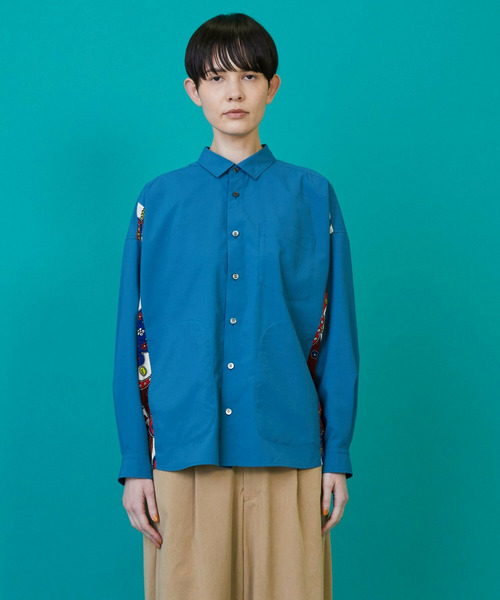 【素材】 キレイなドレープ感としなやかさが特徴の素材にクラシックなスカーフ柄をベースにしたオリジナルの柄。 ジュエリーの様なパーツやボタニカルモチーフがビビットな配色でインパクトをつくっています。 さりげなくロゴが隠れているのもブランドらしい遊びが効いています。 そこに綿のようなナチュラルな表面感が特徴のタイプライター素材を組み合わせています。 【デザイン】 ゆとりのあるシルエットのシャツブラウスをベースにサイドと背中にキレイな色が目を引くスカーフモチーフの大胆な生地を組み合わせました。 切り替え部分にはポケットも付いているので軽い羽織りとしても活躍できるアイテムです。 *こちらの商品はユニセックス商品です。 【ブランド情報】 FRAPBOIS/フラボア 2001年にブランドスタート。 「大人げない大人の服」をコンセプトに、大人が着るリラックスしたデイリーウェアを提案するコレクションブランド。 レディースとメンズのアイテムをご用意しています。 ---------------------------------------------------------------------- 【お気に入り登録】がおすすめです。 ■商品のお気に入り登録 再入荷、残り1点、セールなどの通知を受け取ることができます。 →商品ページ ♡ をクリック ■ショップのお気に入り登録 新商品や再入荷、セール、クーポン配布、ショップニュースなど、いち早くショップの情報を受け取ることができます。 →「♡お気に入りショップに追加」 をクリック ----------------------------------------------------------------------