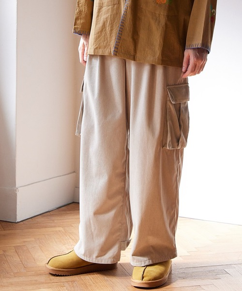 柔らかなコーデュロイ生地を使用したワイドカーゴパンツ。シンプルな無地で様々なスタイルに合わせやすく、秋冬コーデに大活躍◎ 1本あると重宝する万能パンツです。 ・両サイドポケットあり。 ・両サイドカーゴポケットあり。 ・バックポケットあり。 ・ウエストジップフライ仕様。 ・ウエストゴム&内紐仕様 MAX~93cm ・裾タブでシルエット調節可能。 ※こちらの商品は1点1点職人による手作りとなります。その為、形や色合いなど若干異なる場合がございます。あらかじめご了承ください。※屋外での撮影画像は、光の当たり具合で色味・カラーが違って見える場合がございます。商品のカラーは、スタジオ撮影の画像をご参照ください。 Amina Collection Co.,LTD.