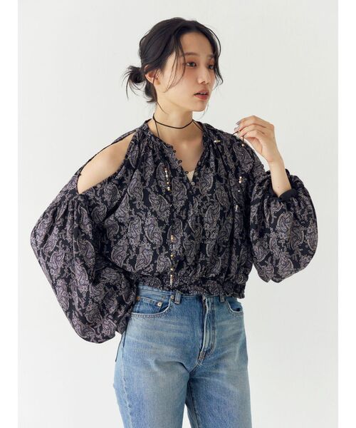 ペイズリー柄をベースにしたブラウス ■デザイン スリーブはたっぷりとボリューム感のあるシルエットで女性らしいシルエット。 肩の部分はボタンで開閉が可能で肩を出してヘルシーにも着て頂けます。 トレンド感のあるバルーンスリーブもポイントになり今季らしい1枚です。 ■生地感 軽さのあるジョーゼット生地で動きのある素材感。 透け感は気にならず着用頂けます。 ■サイズ感 たっぷりとしたボリューム感でゆったりと着て頂けます。 裾の部分はゴムシャーリングですが締め付け感もない仕様に。 ■スタイリング セットアップでエスニックなムードで着て頂くのがオススメ。 今季っぽいムードでぐっとトレンド感ある印象に。 ・・・・・・・・・・・・・・・・・・・・・・ 透け感:なし 裏地:なし 伸縮性:なし 光沢感:なし 生地の厚さ:普通 ・・・・・・・・・・・・・・・・・・・・・・ ※商品画像はサンプルのため、色味やサイズ、素材の混率等の仕様に 変更がある場合がございます。予めご了承ください。 ※生地寄り画像を正規の商品の色味に近づけております。 ■商品のお気に入り登録 再入荷通知やラスト1点、お得なプライスダウンの情報も受け取ることができます。 ぜひご登録ください◎